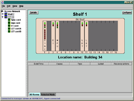 client, this Java application displays element status in real-time, including alarm information, and allows
