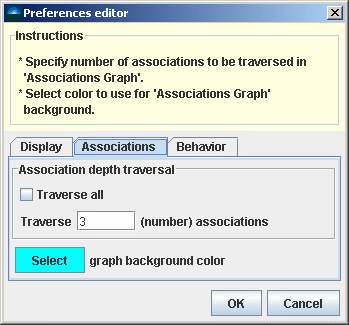 The Associations page contains preferences relevant to the Associations Graph panel: